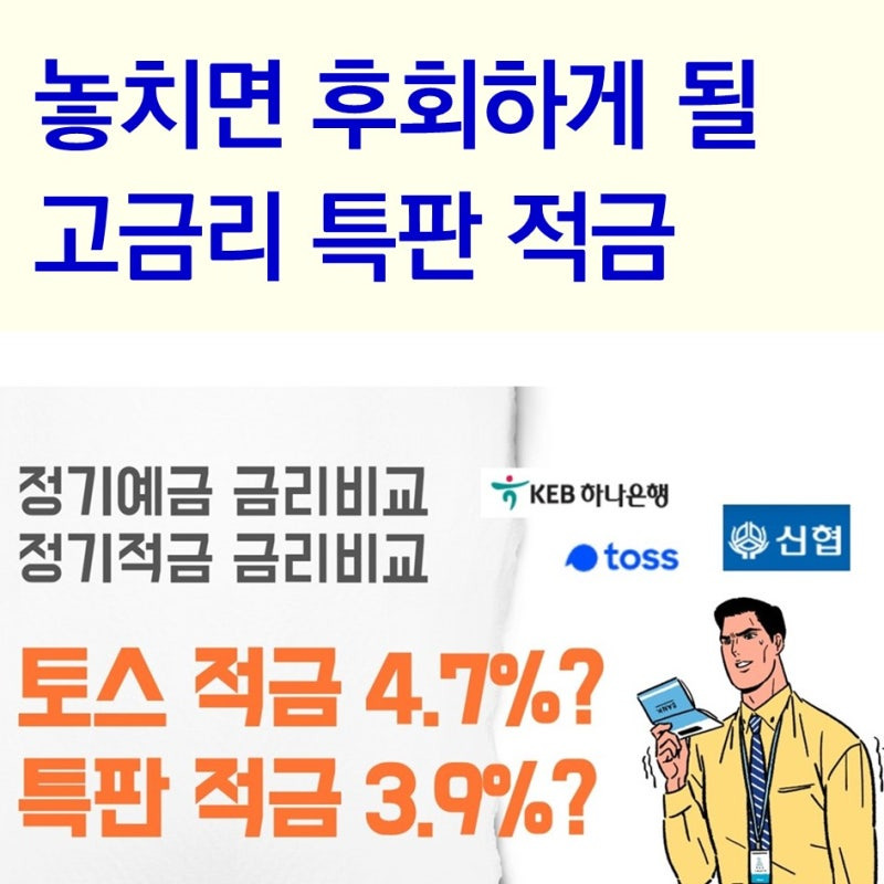 고금리 특판적금 상품은 자산을 늘리는 좋은 방법이지만, 각 은행의 조건과 금리를 잘 비교하고 분석한 후에 가입하는 것이 중요해요. 이 글이 여러분의 금융 선택에 도움이 되길 바라요!