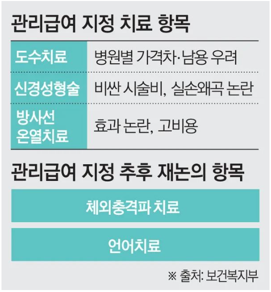 "관리급여로 지정되면 정부가 해당 진료의 가격(수가)을 정하고, 어떤 상황에서 진료를 해야 하는지 가이드라인을 만듭니다. 또한, 환자의 본인부담률을 90% 이상으로 높게 설정하여 사실상 꼭 필요한 경우가 아니면 치료를 받지 않도록 유도합니다."